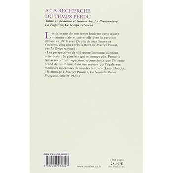 L'ensemble d'A la Recherche du temps perdu en deux volumes présenté dans un élégant coffret. Un chef-d'oeuvre universel. Marcel Proust, avec la gigantesque entreprise que fut l'écriture d'A la Recherche du temps perdu, a ouvert la voie au roman moderne. Rares sont les monuments de la littérature qui se sont d'emblée imposés aux yeux de l'Histoire. Voici le cycle entier, sept romans, en deux volumes sous un emboîtage élégant.