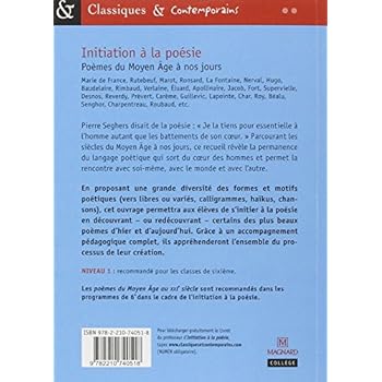 Voilà un très bon livre pour s'initier à la poésie.De nombreux poètes donnés pour exemple: Hugo, Verlaine, Apollinaire et bien d'autres.Bon rapport qualité/prix.